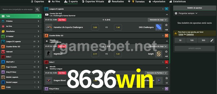 O 8636win oferece uma grande seleção de opções de apostas em e-sports com probabilidades competitivas